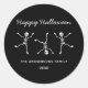 Black & White Hand Drawn Skeleton Happy Halloween Classic Round Sticker