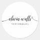 Black White Handwritten Script Calligraphy Classic Round Sticker