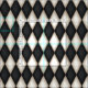 This is a classic black and white Harlequin pattern in black and antique white. Each diamond is softly shaded for an aged romantic look. This large scale print has diamonds that are approximately 4.5" wide and 9" tall, making it great for large projects such as curtains, tents, bedding, ball gowns, and masquerade costumes.