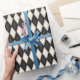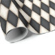 This wrapping paper has an elegant Harlequin pattern of black and and antique white diamonds, perfect for crafts and decorating. This small scale version is suitable for small to medium sized gift boxes and makes great decoupage paper.