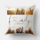 Your family means the world to you, and with this sweet photo collage design, you can show them how much you care. Featuring six of your favourite family photos above and below the text, the word 'family' is prominently displayed in modern calligraphy typography, the letter 'a' is replaced with a heart. Family names are easily personlized. The design is the same on both front and back, so the pillow is reversible. Makes a great gift for any family member, for so many occasions! Copyright Anastasia Surridge for Custom Photo Gifts, all rights reserved. Contact designer for matching products.