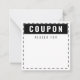Front: Black dashed line border to look like a coupon clipping. Top section has a black background with white text that says "COUPON" in a strong bold font. Below it is "REDEEM FOR" in a thin black coordinating font. The white area underneath is left blank for your handwritten coupon item text/drawings/notes (including any details such as expiration date, terms & conditions or fine print, if desired).