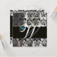 BLACK WHITE ICE SILK DAMASK MONOGRAM BLUE SAPPHIRE INVITATION