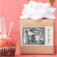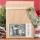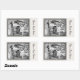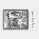 This rectangle sticker is white with a black and white illustration of little red riding hood talking to the wolf in the forest in an ornate black frame. Customise your text with the template.