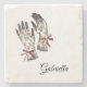 Black White Lace Gloves Burgundy Bow Stone Coaster