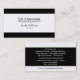 Copyright 2011 Pam's Designs. Represent yourself and your law firm with this professional, plain and simple black and white law business card for a lawyer, judge, attorney, legal secretary, notary, barrister, solicitor, and all other legal services. This law business card template features a white background with a black top and bottom banner. This card is also perfect for accountants, engineers, retail, doctors, surgeons, psychologists, psychiatrists, and more. Try personalising this design by clicking on "Customise It" to change the background colour, font, and text colour and size.