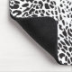 Cool black and white leopard head with ember brown eye and profile view, camouflaged in his own spots.