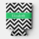 Black White LG Chevron Emerald Name Monogram Can Cooler