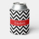 Black and White Large Chevron Zig Zag Pattern, Red Ribbon Name Monogram Label