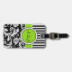 Black, White, Lime Striped Damask Luggage Tag
