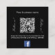 A classic black background. Personalise and add your business name, your own qr code to your Facebook account and a text. With the text: Follow us!
