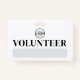 A simple and professional volunteer badge design, perfect for events, businesses, or organisations that rely on volunteers. "Volunteer" is prominently displayed at the top, with space below for the event or business name and date.