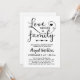 Black and white adoption baby shower invitation with cute hearts. Gender neutral adoption shower invitation with Love makes a family in a charming typography design.