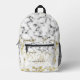 Black white marble gold sparkle bling Monogram Printed Backpack. Personalise accessory bag with your name. Black and white marble gold sparkle flakes. Elegant black and white marble texture with accent of gold glitter sparkle flakes. *photo of sparkles, not actual glitter!