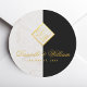 Black White Marble Monogram Gold Elegant Wedding Classic Round Sticker