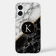 Personalised Monogram Custom Letter iPhone Cases with Faux Black and White Marble Stone Design by MIGNED - Add Your Letter / or Year - Age / Number / More with Customisation tool ! Good Luck - Be Happy :)