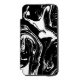 Black and white marble style iPhone wallet case.