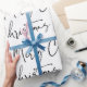 Elegant Black White Merry Christmas Trees Quote Gift Wrapping Paper has "Merry Christmas" written in a beautiful script font