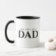 Minimalist Dad mug in black and white with modern typography. Comes with front and back design. Customize with Dad's initial and name. Great for Father's Day or birthday gift for Dad.
