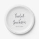 Black white minimalist handwritten script wedding paper plate
