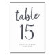 Modern minimalist wedding table cards feature bold handwritten brushy script in charcoal black and white colour, simple and stylish.