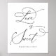 Black & White Minimalist Love is Sweet Dessert Bar Poster