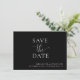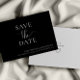 Announce your upcoming wedding with this minimalist save-the-date announcement card. This card features simple text and a black-and-white theme. Customise the text on the front and back of the card to share the details of your upcoming wedding. Visit my store to see other colour options to match your wedding colours. #minimalistwedding #savethedate #weddingplanning
