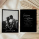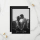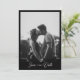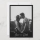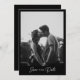 A simplistic and clean black and white wedding save the date card, featuring a photo at the front, and script lettering on the front and back. Customise with all of your wedding info for guests.