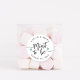 Punny wedding favour stickers feature "mint to be" in soft ash black hand lettered script accented with teal hearts. Personalise with your names and wedding date.