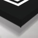 Modern black and white, abstract illusion art pattern, with white block line squares within each other, and floating on a black background. Geometric in design with the pattern seemingly floating in space. Keep as is, or customise the solid background colour to accent your room. The fun aspect is that the art seems to have movement and flow, as well as a contemporary aspect of line, shape, colour, texture and space. Also, the wall art can be hung on any angle if desired. Your choice of product size, but note: it looks best on a square canvas so make sure to preview if you are choosing any other product size. And some sizes offered may alter, or not fit, entire design.