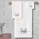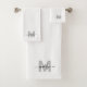 Black White Modern Girly Script Name Monogram Bath Towel Set