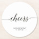 Black & White Modern Lettering Cheers Party Round Paper Coaster