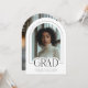 Introducing our black and white arch photo graduation announcement—a sleek, modern keepsake designed with minimalist elegance. The front features an arch-shaped photo with a thin border and the word "grad" partially overlaying the photo. Personalise the template by adding your graduation year, name, and school to create your announcement with ease. On the back, upload a full-sized photo and include a signature line. © Kimbellished, LLC