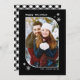 Theme Parties' modern minimalist holiday photo card design features clean black backdrop for your favourite holiday photo set in a geometric rectangle shape with two rounded corners. The reverse side is an iconic plaid pattern / buffalo check in matching black and white. Change "Happy Holidays" to your favourite holiday greeting. #Christmas #Holidays #ChristmasCards