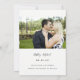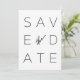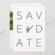 This chic, Black & White Modern Minimalist Script Photo Save the Date card features 'Save the Date' in a trendy black typography minimalist layout over a white background on the front, with the innovative twist of having the word 'the' in the middle of the design in a diagonal script typography. The back of the card features your horizontal orientation photo running from edge to edge at the top, your names in a beautiful hand lettered script typography, wedding date and wedding location below.