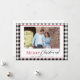 Black White Modern Rustic Plaid Couple photo Holiday Card