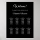 A classic black background. Personalize and add the name of the bride and groom, add your guests names. White text.
