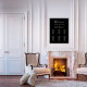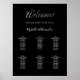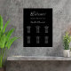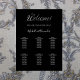 A classic black background. Personalise and add the name of the bride and groom, add your guests names. White text.