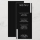 Black wedding reception menu card with white stripes. Elegant typography for an expensive look at an affordable price. Customise the meal list and personal details. Great for a modern minimalist wedding theme with a touch of style.