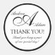 Elegant Monogram Wedding Favour Thank You Sticker. Personalise with the last name initial and the bride name and groom name. By Elke Clarke ©2009. Fully customisable bu using the edit menu, including the colours of the text and the circle design and background. "Customise it" with your personal information and use it to seal your wedding thank you card envelopes or add to your wedding favours.