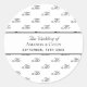 Elegant and timeless, using your monogram as a pattern. A chic white background. Personalise and add your monogram letters. Your family name's initial in the middle with a capital letter. Add your names and the wedding date. Black text.