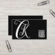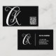 This editable business card template is perfect for any business that wants to convey a sense of sophistication and elegance. It has a black background, a minimalist design, big calligraphic letters that suit any industry or niche. It also has a QR code that connects your contacts to your website or portfolio.