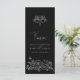 Black and white fleur de lis stylised spring or summer wedding dinner menu. Edit this 4 course menu with your own meal option wording. Modern yet classical hand drawn fleur de lis and blossom, vines and butterflies art wedding menu. © Original hand drawing and design by Sarah Trett for www.mylittleedenweddings.com exclusively on zazzle.