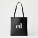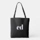 Black white monogram initials bold tote bag