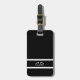 Black white monogram initials luggage tag