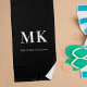 A classic black background. Personalise and add a name and monogram initials. The name is written in white with modern block letters.