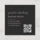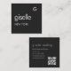 A sleek, modern square business card designed for professionals who value simplicity and sophistication. Featuring a bold black monogram, crisp white background, and a scannable QR code, this design blends timeless minimalism with modern functionality — perfect for making a memorable first impression.