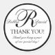 Elegant Monogram Wedding Favour Thank You Sticker. Personalise with the last name initial and the bride name and groom name. By Elke Clarke ©2009. Fully customisable bu using the edit menu, including the colours of the text and the circle design and background. "Customise it" with your personal information and use it to seal your wedding invitation envelopes or add to your wedding favours.