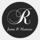 Customisable Monogram Wedding Sticker. Customise with your names and dark background colour