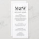Black White Monogram Wedding Menu. Beautiful black and white design with modern typography and couple's initials in classic black text on white front with white. Personalise with the bride and groom's initials, wedding date, wedding menu and adjust the invitation sample text and or colours as you wish.